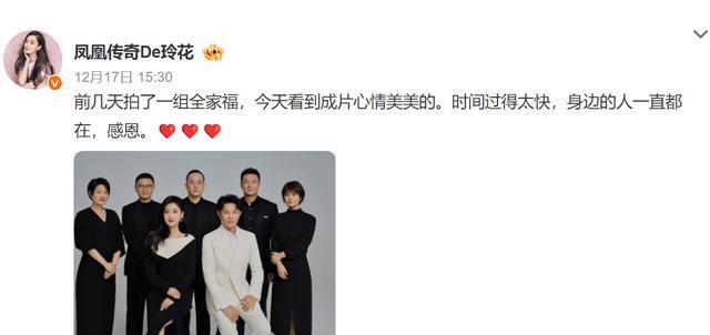 12月17日,凤凰传奇的玲花和曾毅同时在个人帐号上发了一张“全家福”。